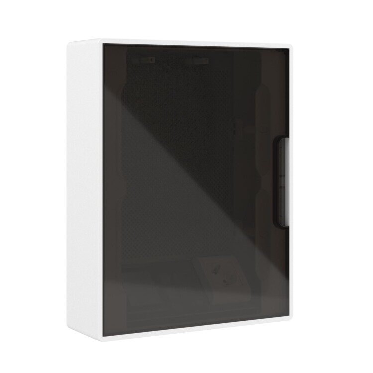 Щиток 24 мод настенный слаботочный FRAME, белый, с тонированной дверцей, с монтажной платой, в комплекте с 1 розеткой Viva (арт. 45005) и 1 коробкой PDD (арт. 10033)