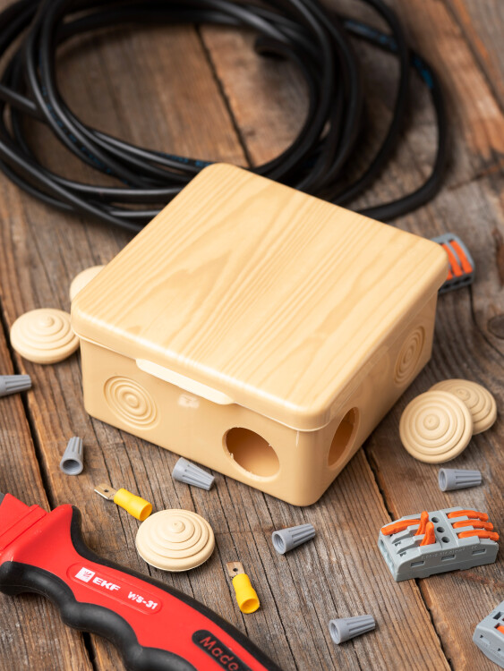Коробка распределительная КМР-030-014 с крышкой (100х100х55), 8 мембранных вводов светлое дерево IP54 EKF PROxima