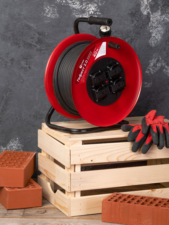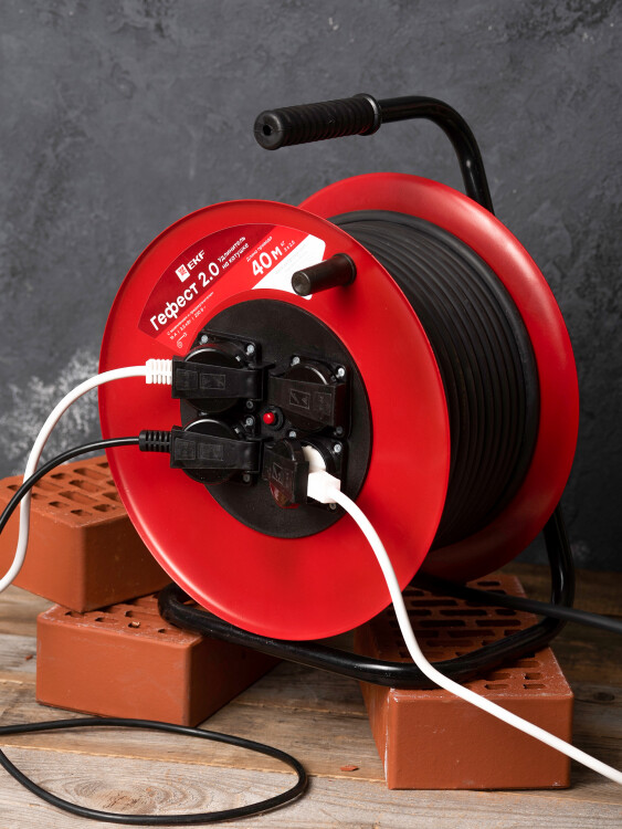 Удлинитель на катушке "Гефест 2.0" 4 гнезда 40м с заземлением и предохранителем КГ 3*2,5 16А/3,5кВт IP44 PROxima