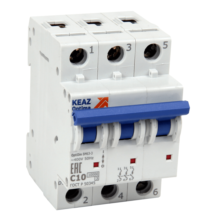 Автомат. выкл. 3-пол. 10А тип C 10кА OptiDin BM63-3C10-10-УХЛ3