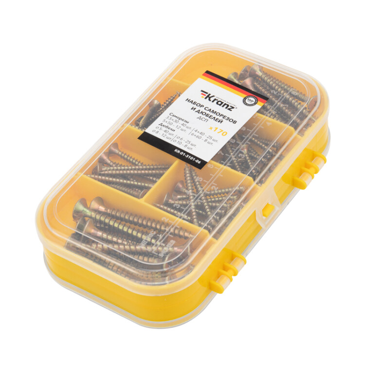 Набор саморезов и дюбелей для ДСП (170 шт/уп) KRANZ