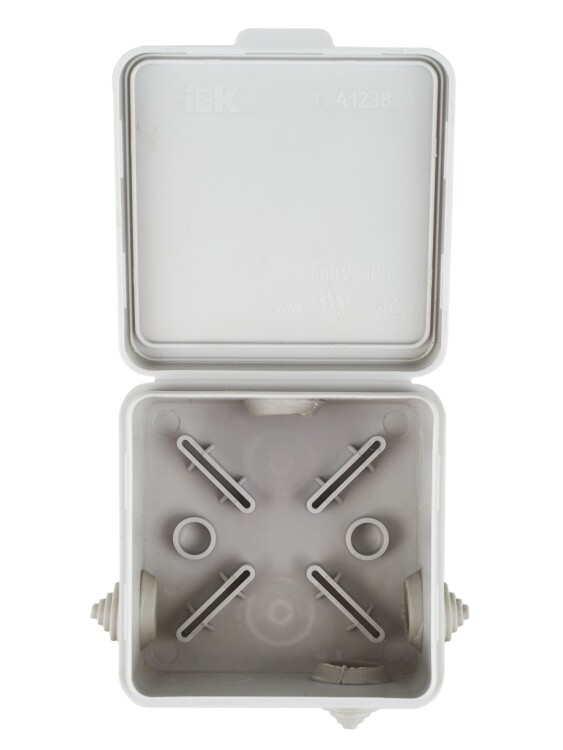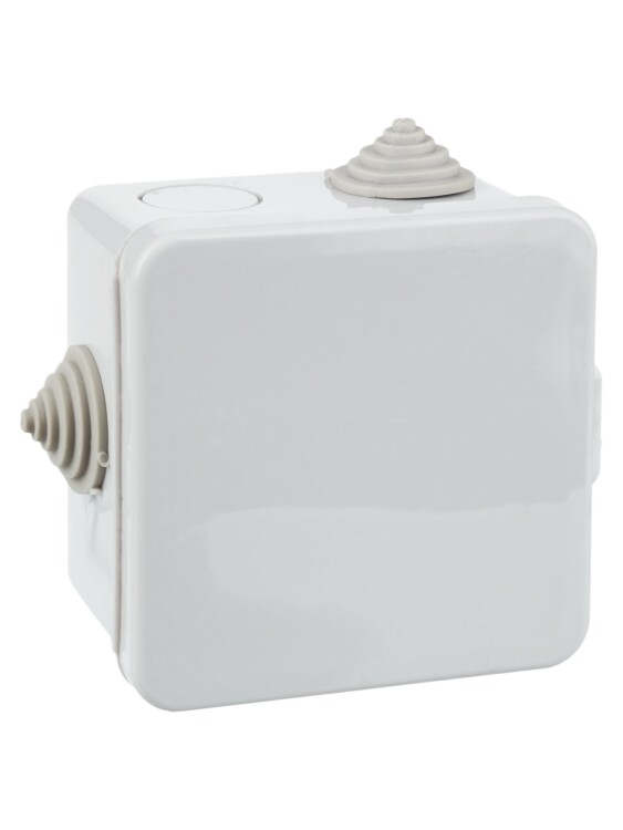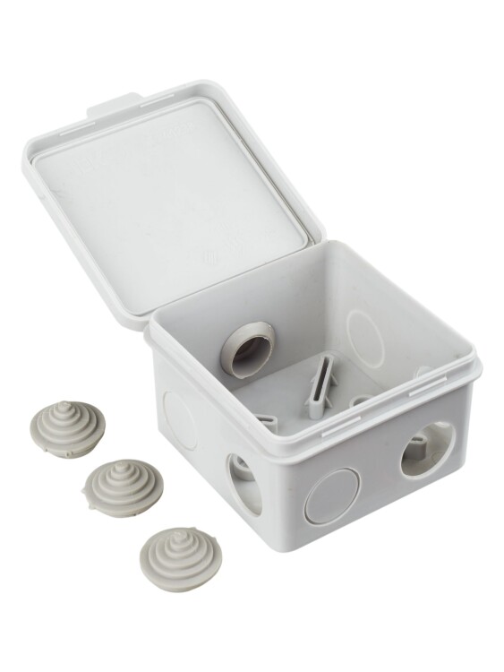 Коробка распаячная КМ41238 для открытой проводки 80х80х50мм с откидной крышкой IP54 7 гермовводов се