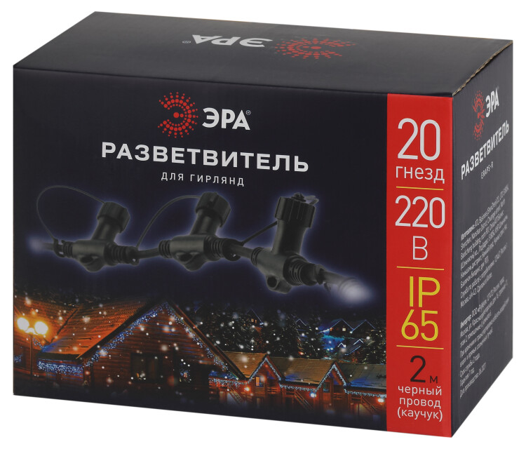 Разветвитель ЭРА ERAPS-R для гирлянд IP65 20 гнезд 2 метра каучук черный