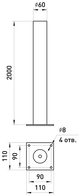 Опора металлическая ЭРА ОМ-2,0 для светильников НТУ черная h2000мм