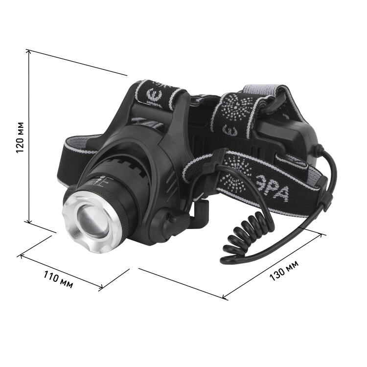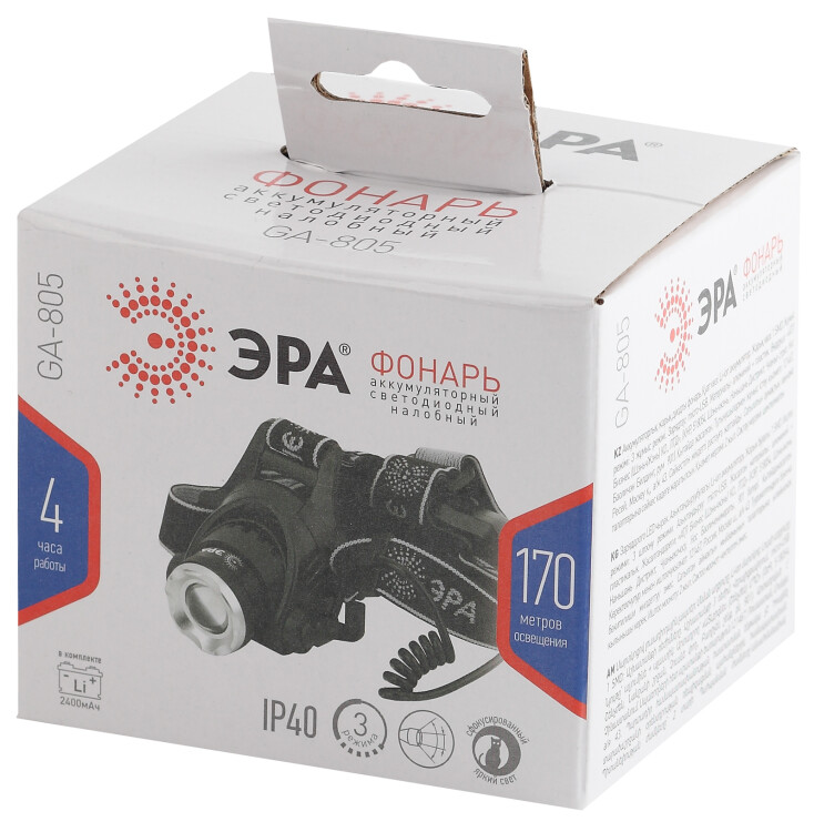 Фонарь налобный светодиодный ЭРА GA-805 аккумуляторный яркий мощный 3 режима черный