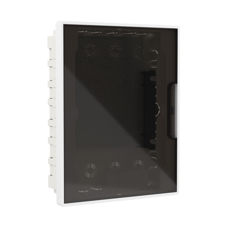 Щиток 24 мод встраиваемый слаботочный FRAME, белый, с тонированной дверцей, с монтажной платой,в комплекте с 1 розеткой Viva (арт. 45005) и 1 коробкой PDD (арт. 10033)