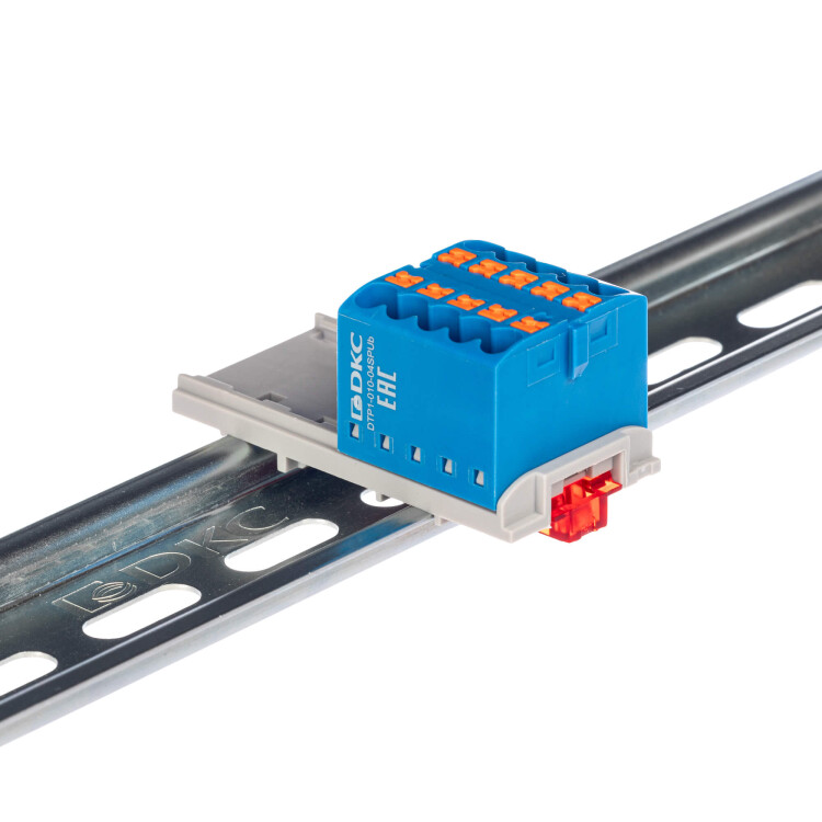 Блок распределительный с верт. адаптером на рейки шириной 15/35мм, зажим push-in, 10 точек подключения 2,5 кв.мм, синий