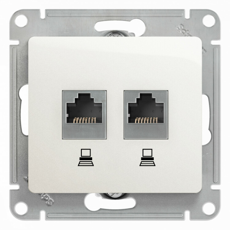 Розетка компьютерная 2хRJ45 кат.5E переламутр Glossa