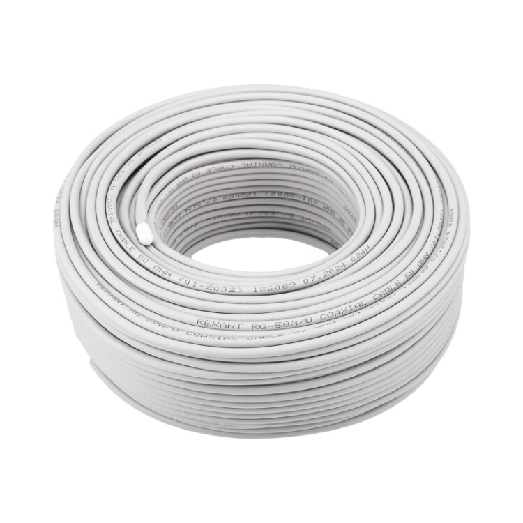 Кабель коаксиальный RG-58 A/U, 50 Ом, Cu/Al/Cu, 64%, 100м, INDOOR, серый REXANT