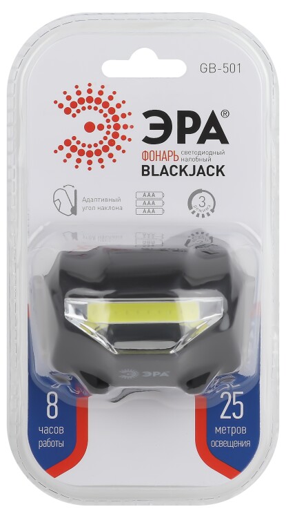 Фонарь налобный светодиодный ЭРА GB-501 Блэкджек на батарейках мощный яркий 3 режима черный
