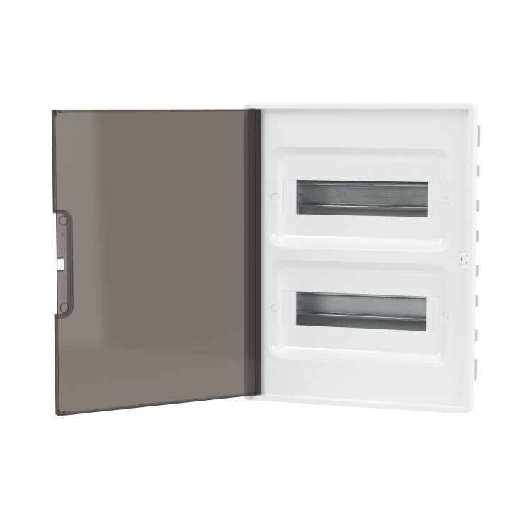 Щиток 24 мод встраиваемый для полых стен FRAME, белый, с тонированной дверцей, с 4 шинами PEN (2шт на 8 отв. и 2шт на 6 отв.)