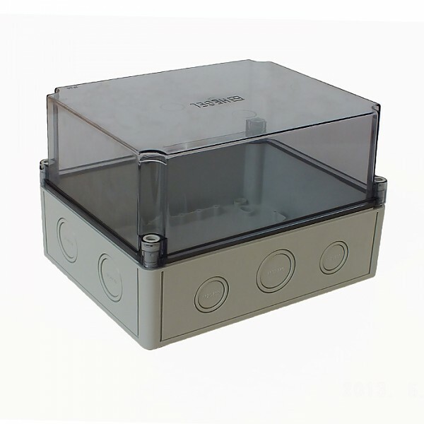 КР2802-923 Коробка КР2802-923 ПК поликорбанат,серый цвет корпуса,крышка высокая,прозрачная,DIN-рейка РП1