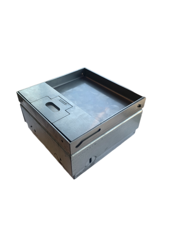 Напольный люк на 2 поста (45х45) вертикально, с крышкой из нержавеющей стали в уровень пола, с коробкой, IP44