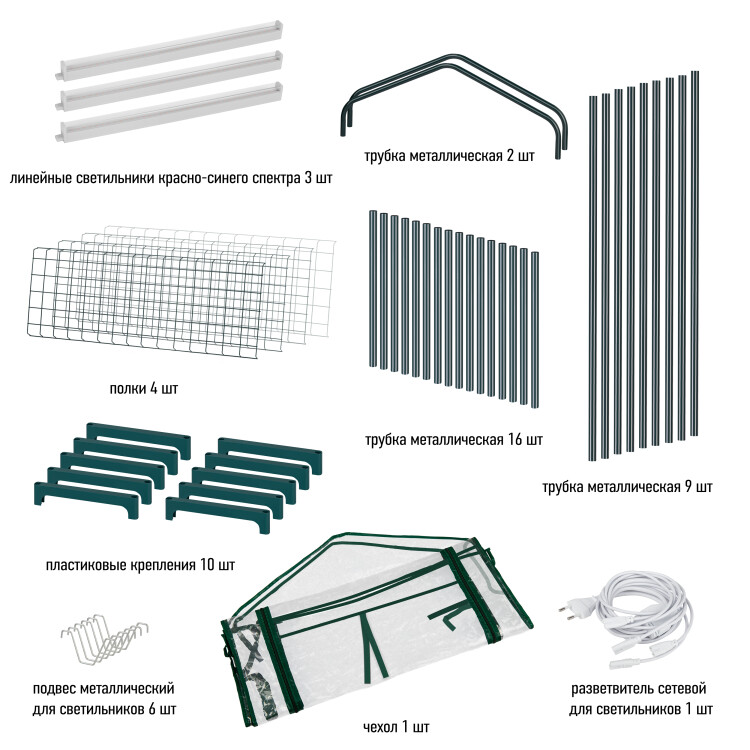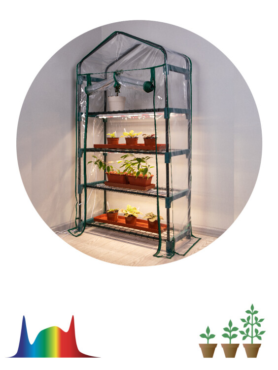 Теплица ЭРА FITO-House - 4 со светильниками в комплекте 4 яруса 1250х690х300 мм