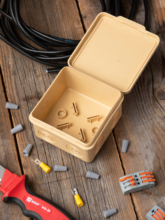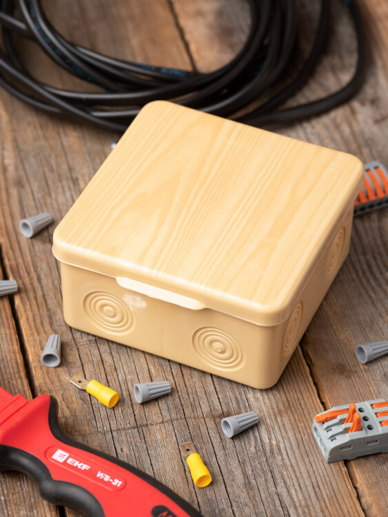 Коробка распределительная КМР-030-034 пылевлагозащищенная без мембранных вводов (100х100х55) светлое дерево EKF PROxima