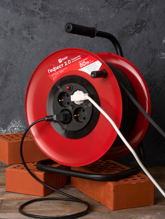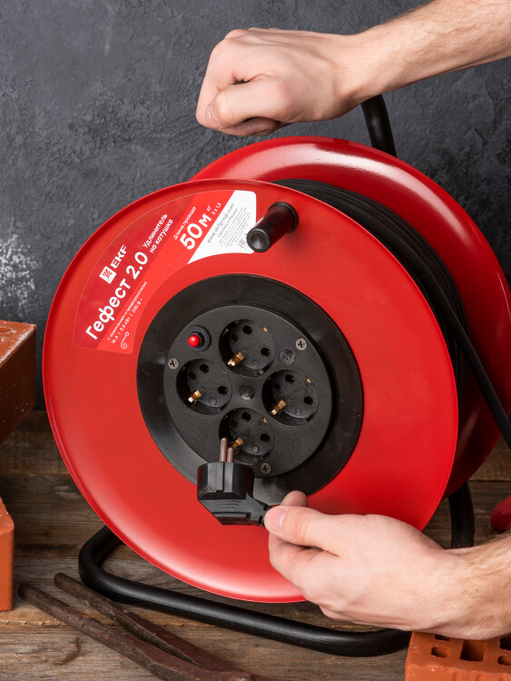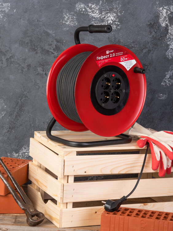 Удлинитель на катушке "Гефест 2.0" 4 гнезда 50м с заземлением и предохранителем КГ 3*1,5 16А/3,5кВт PROxima