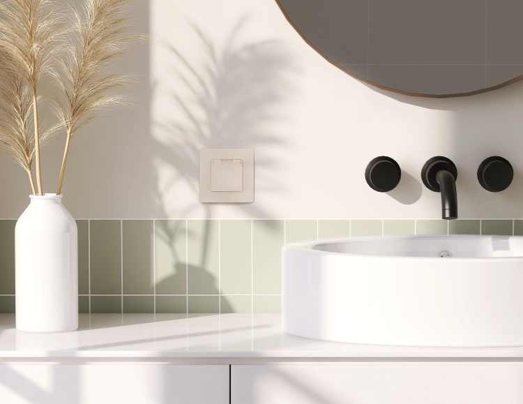 Розетка 2P+E 16А IP44 со шторками с крышкой безвинт. зажим слоновая кость Etika