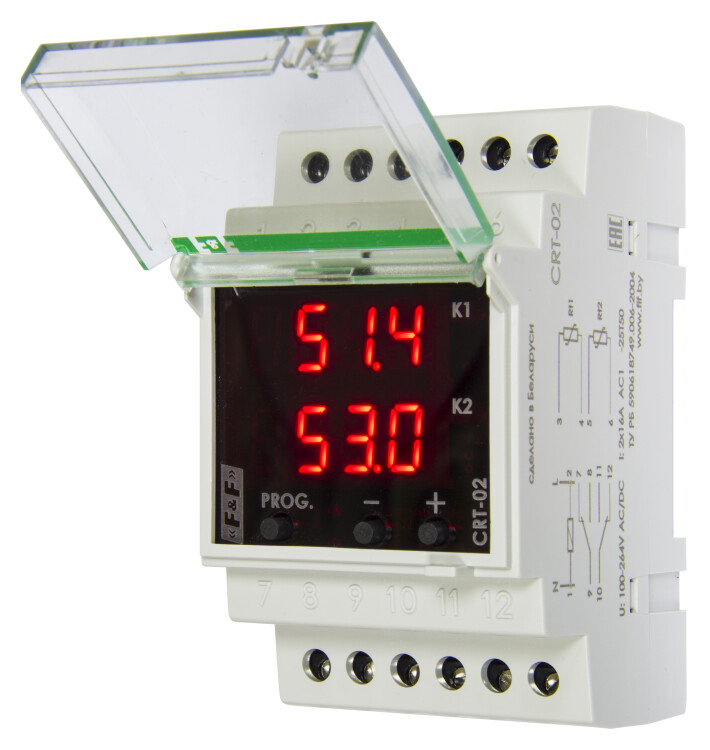 Регулятор температуры CRT-02 2-канал., диапазон -50 до +140град., 100-264В AC/DC 2х16А 2NO/NC IP20