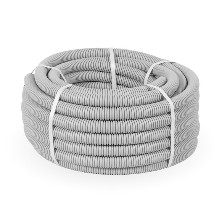 Труба гофрированная ПВХ тяжелая 750 Н серая с/з д25 (50м/2600м уп/пал)