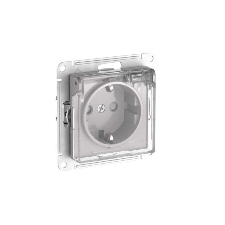 ATLASDESIGN AQUA РОЗЕТКА с зазем. со шт. с прозрач. крыш,16А,IP44, мех., быстрозажим. клем.,АЛЮМИНИЙ