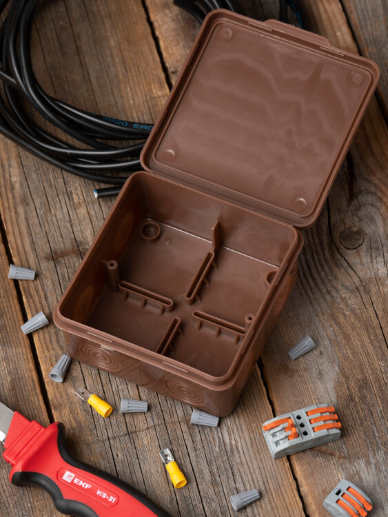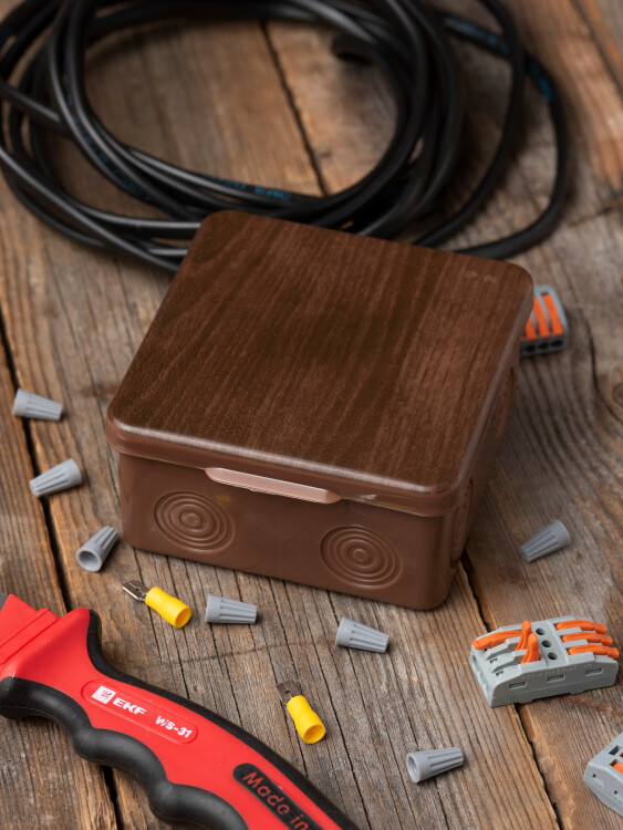 Коробка распределительная КМР-030-034 пылевлагозащищенная без мембранных вводов (100х100х55) тёмное дерево EKF PROxima