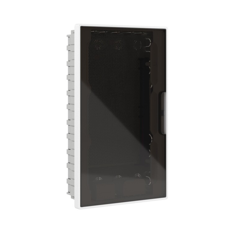 Щиток 36 мод встраиваемый для полых стен слаботочный FRAME, белый, с тонированной дверцей, с монтажной платой,в комплекте с 2 розетками Viva (арт. 45005) и 2 коробками PDD (арт. 10033)