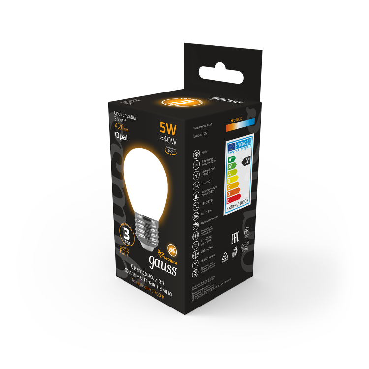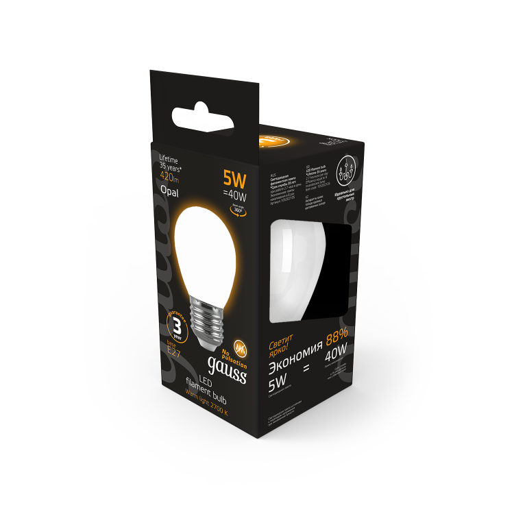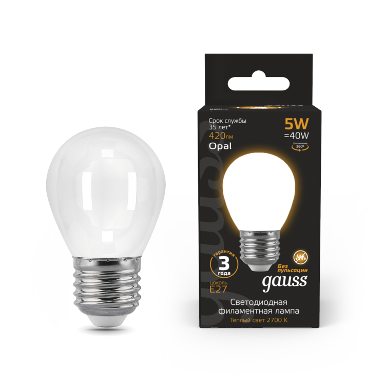 Лампа светодиодная 5 Вт 230В Е27 Filament OPAL шарик, тёплый 2700К