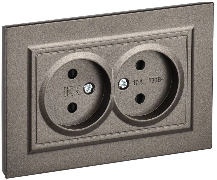 Розетка 2*2P с защитными шторками 10А в сборе РСш12-2-БрТБ темная бронза BRITE