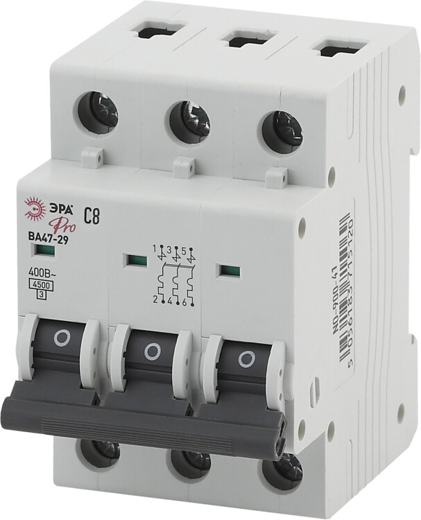 Автоматический выключатель ЭРА PRO NO-900-41 ВА47-29 3P 8А кривая C 4,5кА