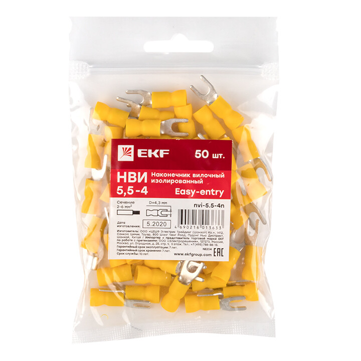 Наконечник вилочный изолированный НВИ 6.0-4 (50шт.) EKF PROxima