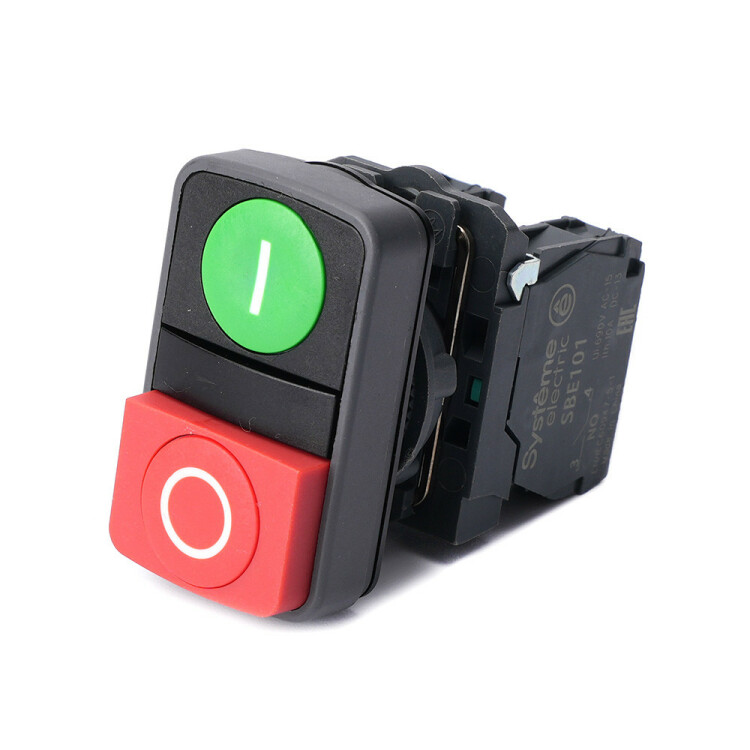 Кнопка двойн SB5 в сборе модуль 22мм зел "I"+красн выступ "O" пластик 1НО+1НЗ