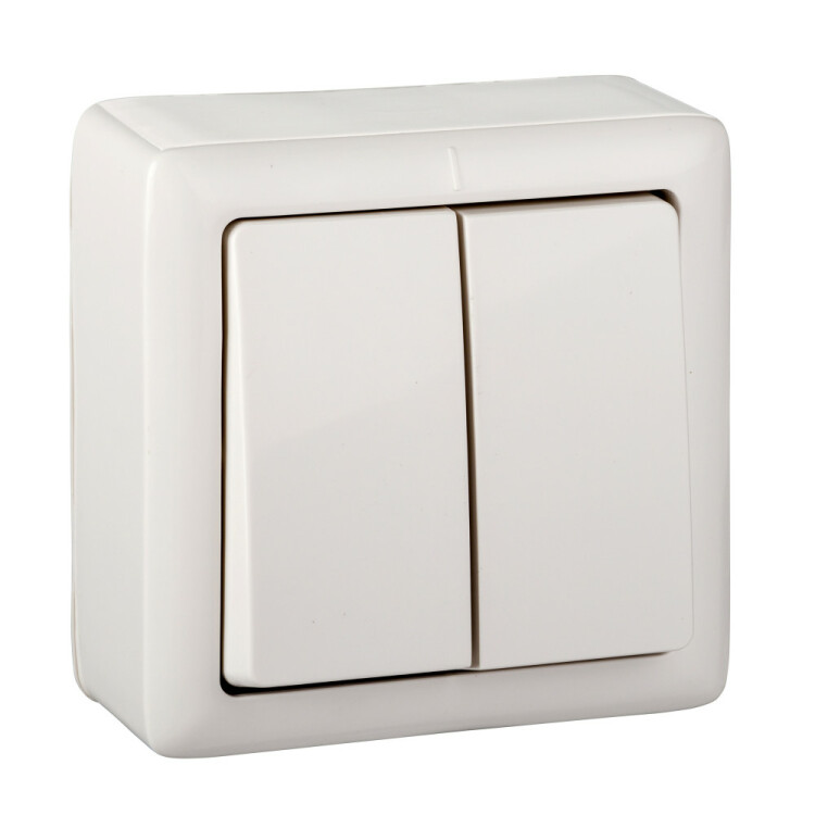 ХИТ О/У 2-клавишный ВЫКЛЮЧАТЕЛЬ ИЗОЛ.ПЛ. 6А, 250В, БЕЛЫЙ