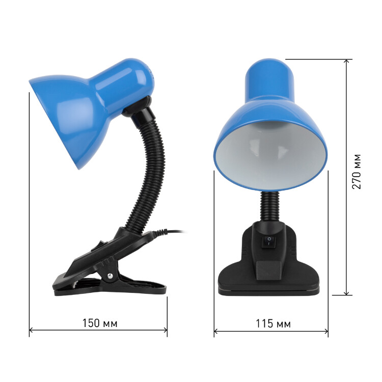 Настольный светильник ЭРА N-212-E27-40W-BU на прищепке синий