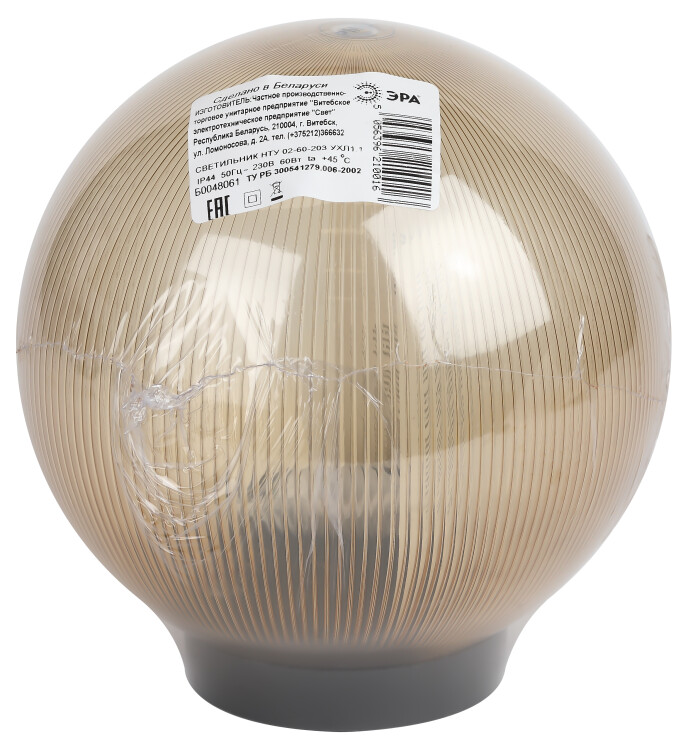 Садово-парковый светильник ЭРА НТУ 02-60-203 шар золотистый призма на опору / кронштейн IP44 Е27 max60Вт d200mm