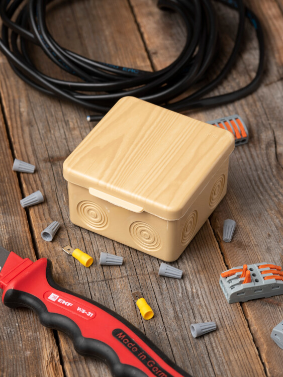 Коробка распределительная КМР-030-035 пылевлагозащищенная без мембранных вводов (80х80х50) светлое дерево EKF PROxima