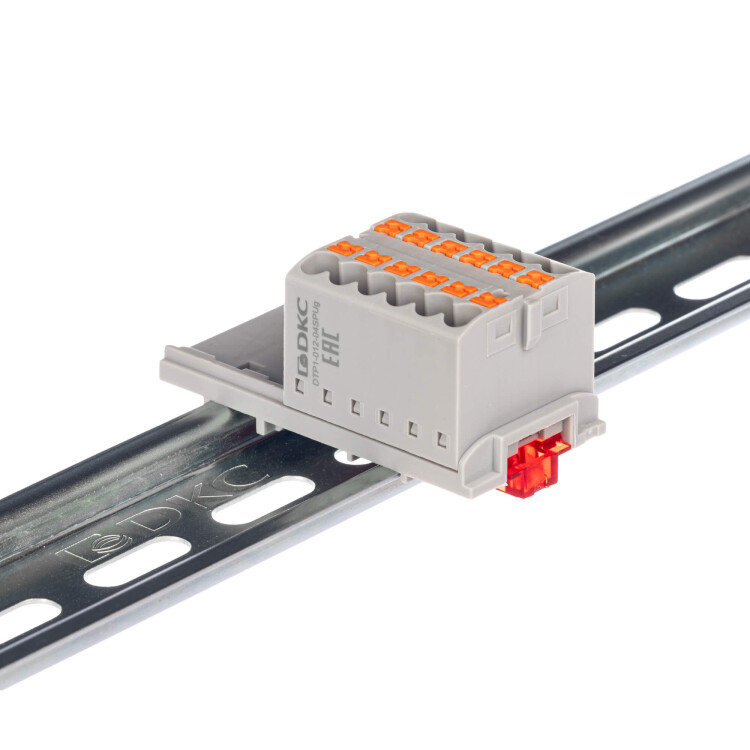 Блок распределительный с верт. адаптером на рейки шириной 15/35мм, зажим push-in, 12 точек подключения 2,5 кв.мм, серый