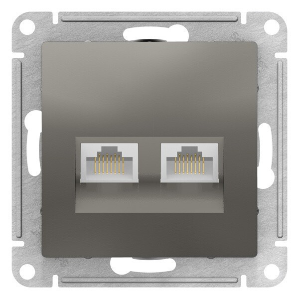 ATLASDESIGN РОЗЕТКА двойная компьютерная RJ45+RJ45 кат. 6А, механизм, СТАЛЬ