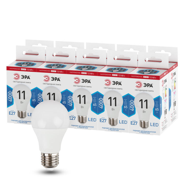 Лампочка светодиодная ЭРА STD LED A60-11W-12/48V-840-E27 E27 / Е27 11Вт груша нейтральный белый свет