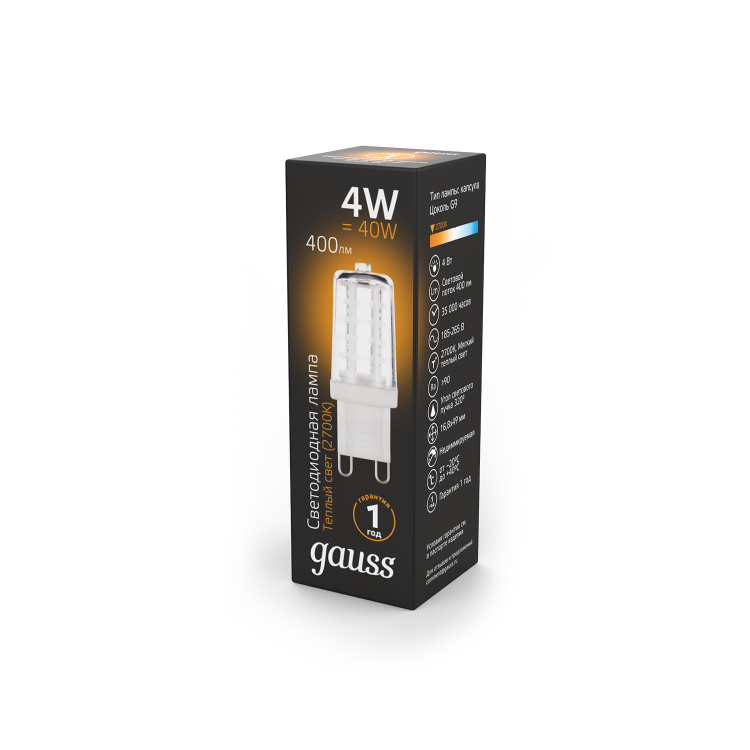 Лампа светодиодная 4 Вт 185-265В G9 керамика 2700K тёплый