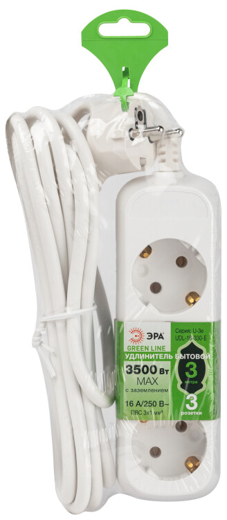 Удлинитель электрический ЭРА UDL-16-330-E Greenline 3 розетки с заземлением 3м ПВС 3x1мм2