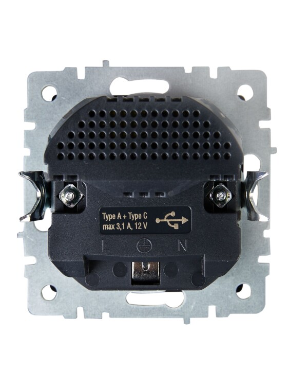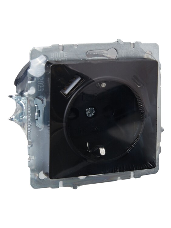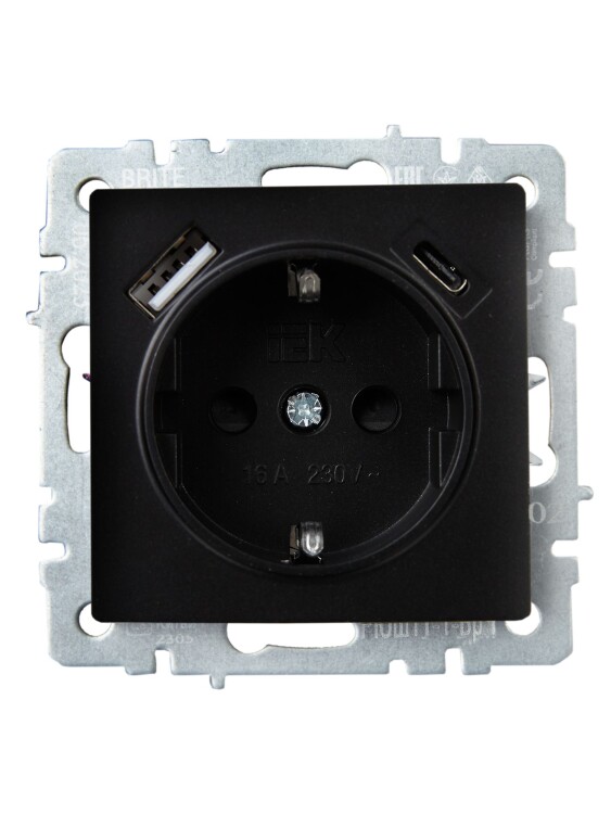 Розетка 2P+E с защитными шторками 16А с USB A+C 18Вт РЮш11-1-БрЧ черный BRITE