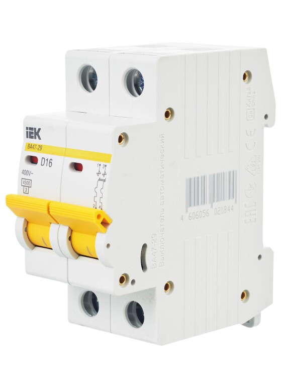 Автомат. выкл. 2-пол. 16А тип D 4,5кА серия ВА47-29 2Р 16А 4,5кА х-ка D ИЭК