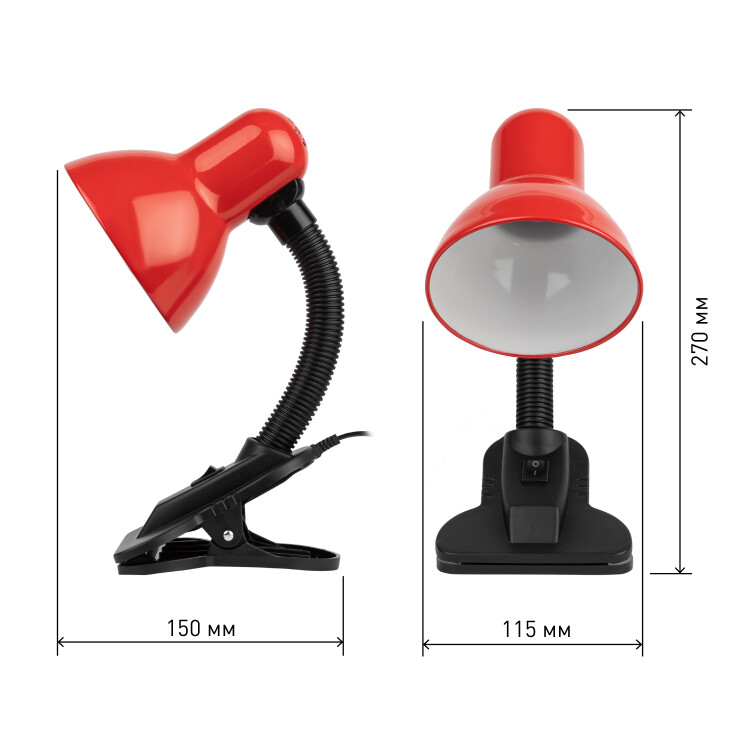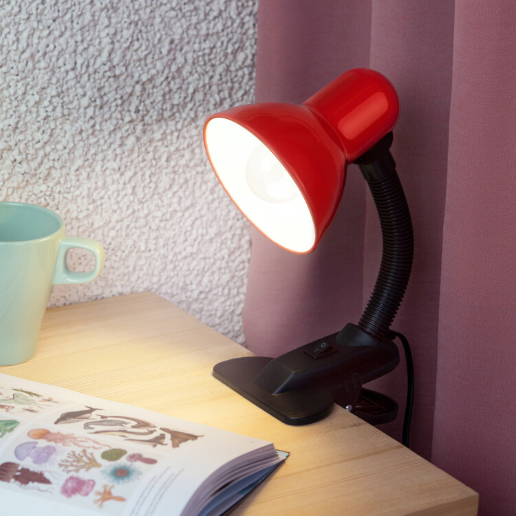 Настольный светильник ЭРА N-212-E27-40W-R на прищепке красный