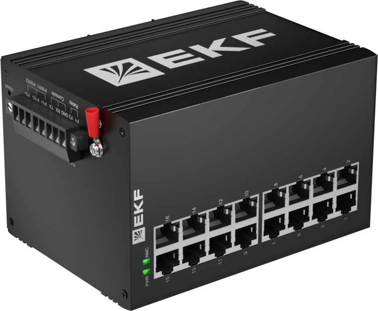 Промышленный управляемый коммутатор уровня L2 ML2-16GTP, 16 портов 10/100/1000Base-T(X) RJ45 c PoE, монтаж на динрейку TSX EKF