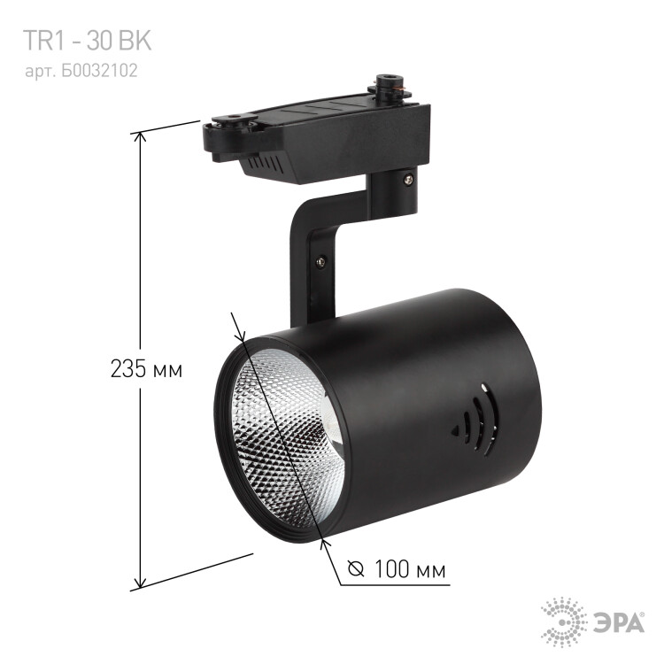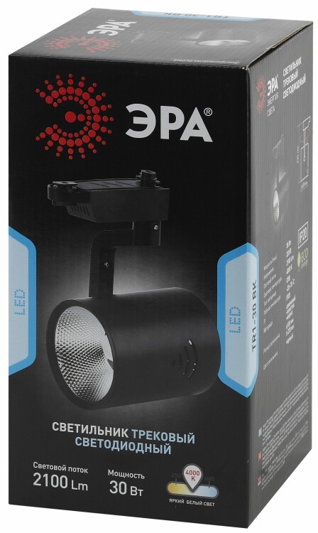 Трековый светильник однофазный ЭРА TR1 - 30 BK светодиодный COB 30Вт 4000Л 2100Лм черный