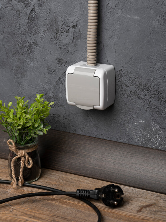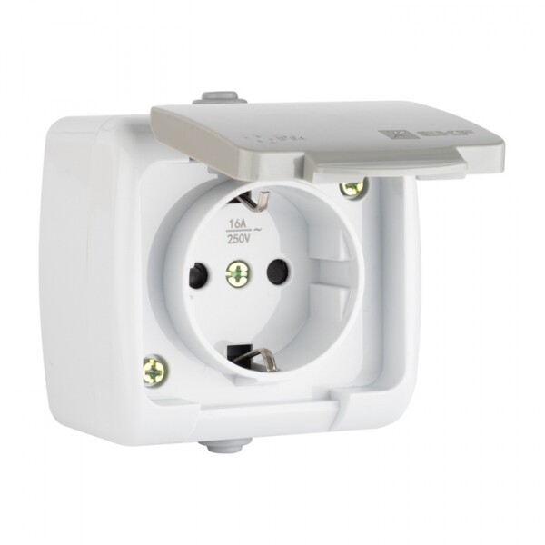 Розетка 2P+E со шторками с крышкой накладная серый IP54 EKF Мурманск