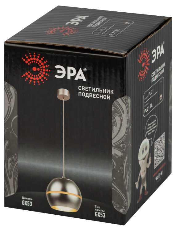 Светильник подвесной (подвес) ЭРА PL21 SL GX53 потолочный шар серебро