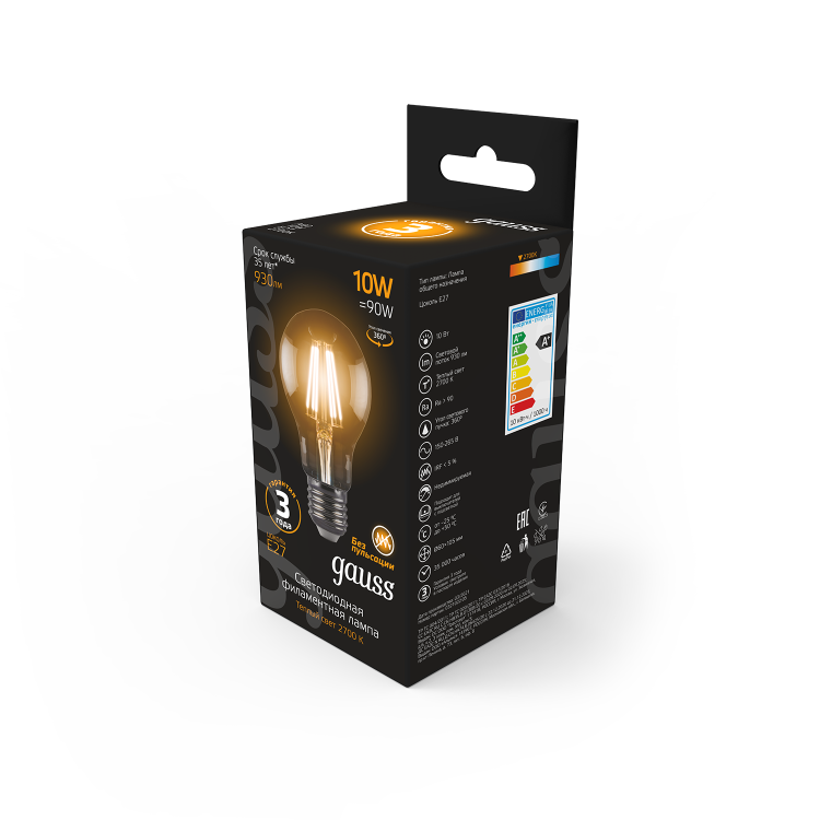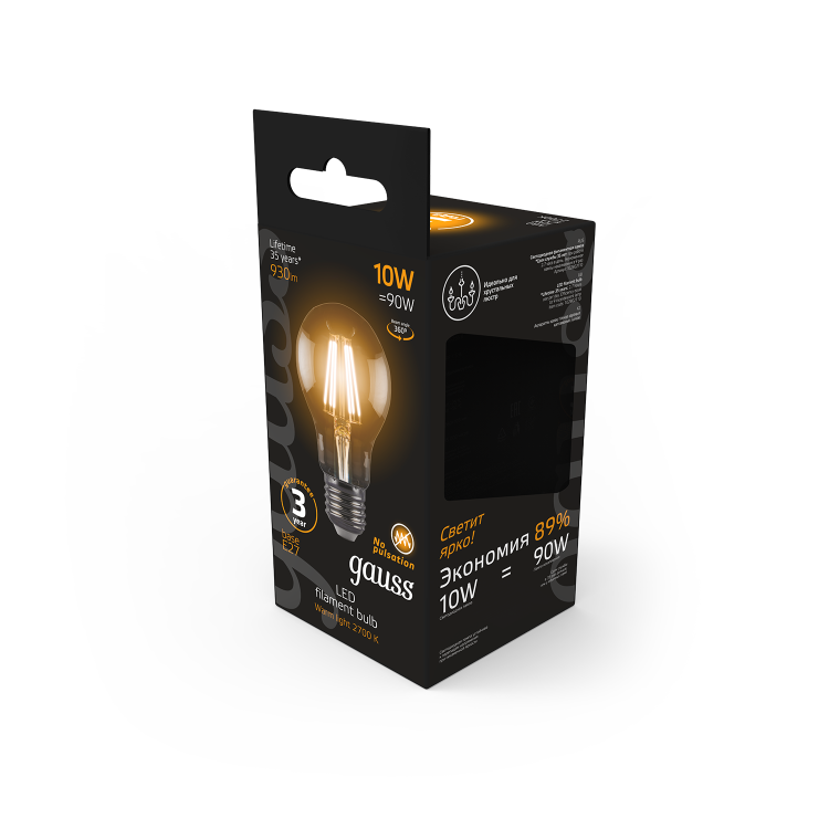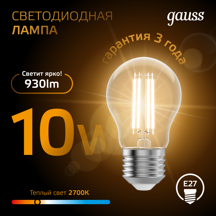 Лампа светодиодная 10 Вт 230В Е27 Filament А60, тёплый 2700К