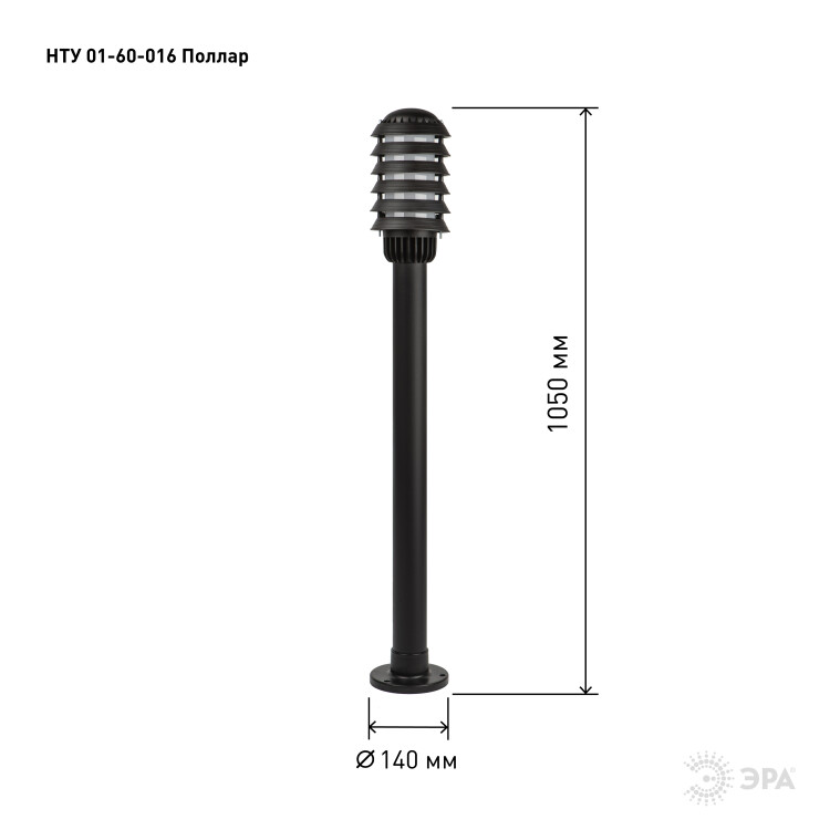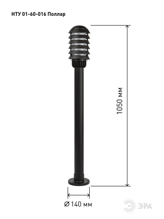 Светильник опор. 60Вт E27 IP54 165-260В 140х1050мм НТУ 01-60-016 Поллар чёрный