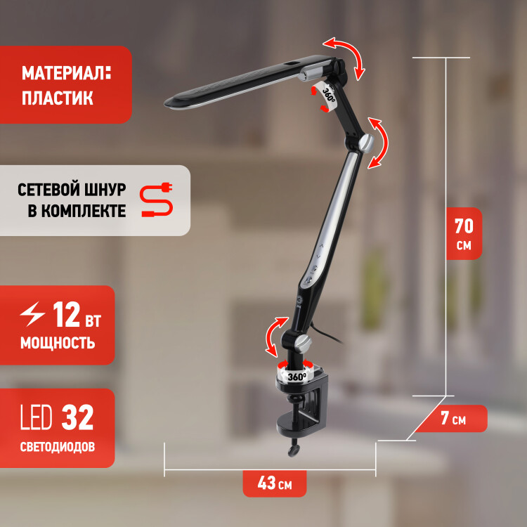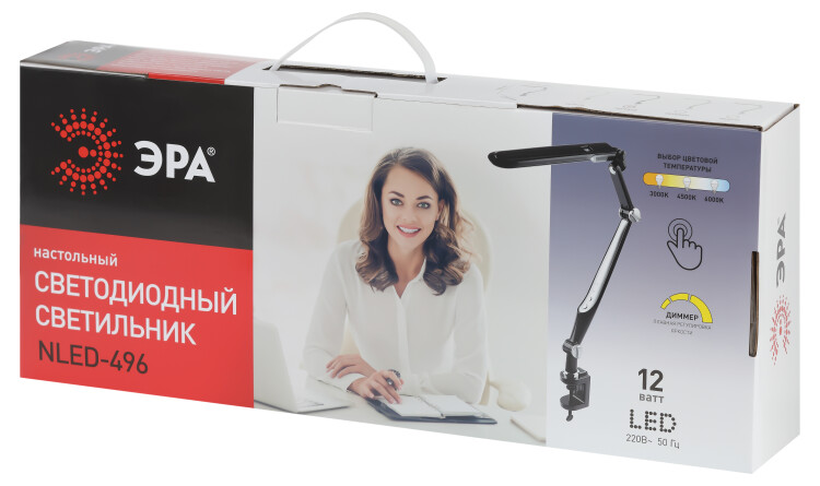 Настольный светильник ЭРА NLED-496-12W-BK светодиодный на струбцине черный